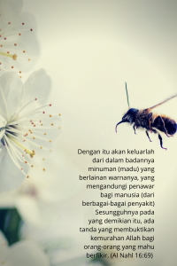 There emerges from their bellies a drink (honey), varying in colours, in which there is healing for people. Indeed in that is a sign for a people who give thought (Al Nahl 16:69)