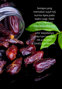 The Prophet said: “Whoever eats seven Ajwa dates in the morning, will not be harmed by any poison or witchcraft that day”